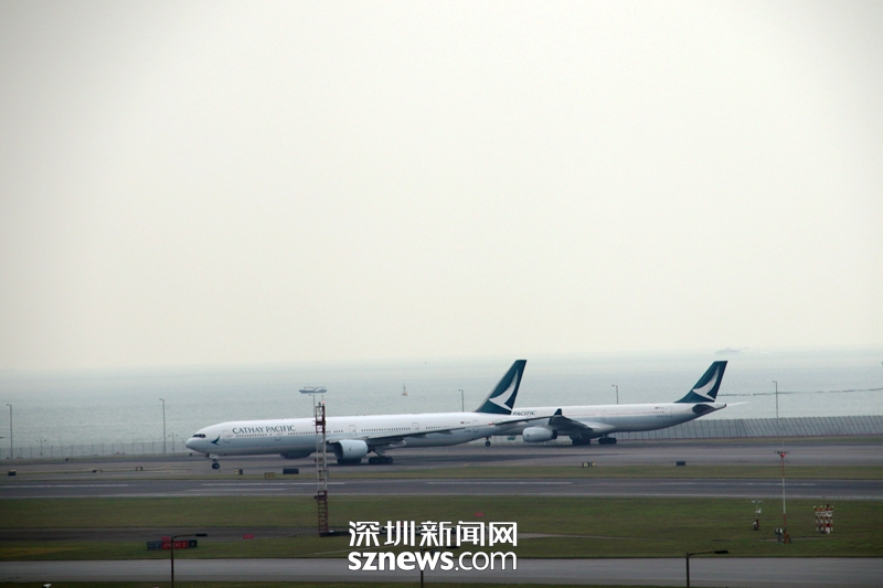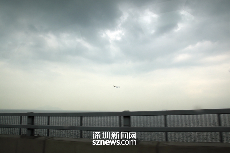 由于港珠澳大桥香港起点就在香港机场地块,每隔几分钟就有飞机掠过天空