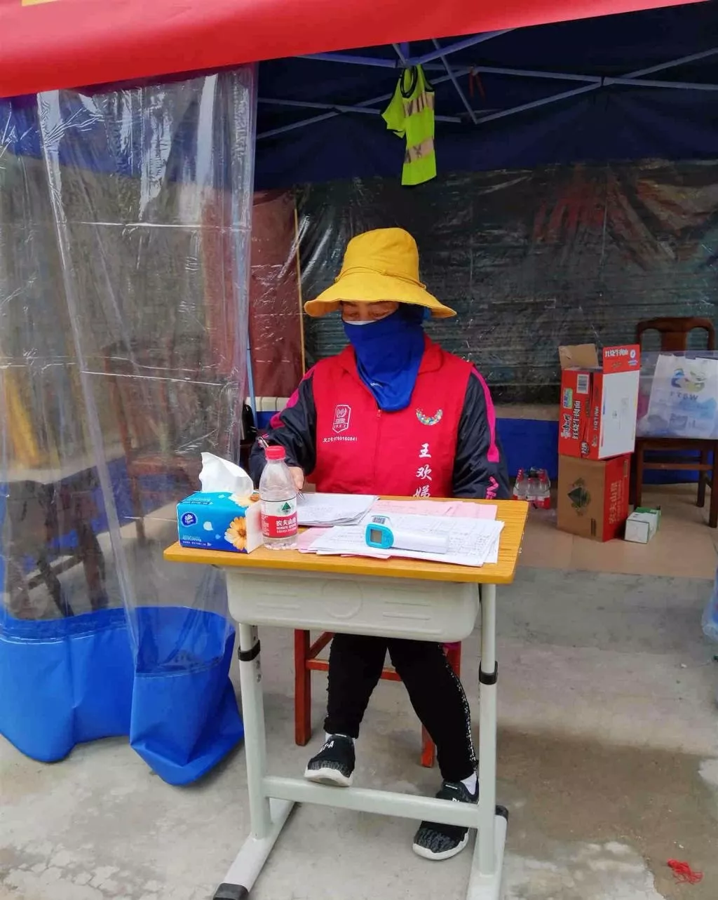 在龙岗区平湖街道力昌社区防控防疫卡点,一名身着红马甲的志愿者忙个不停。虽然她的脸被口罩、帽子遮得严严实实,但红马甲上写着得三个大字透露了她的身份:王欢娣。