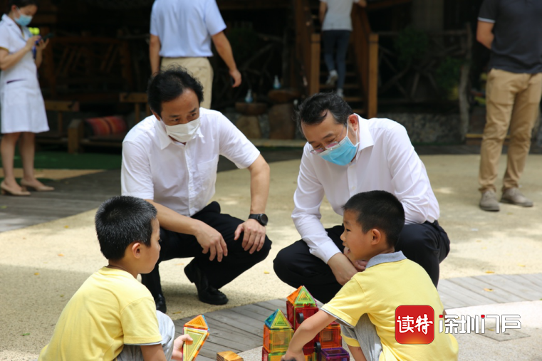 南山区委书记王强,副区长练聪,区政协副主席、区教育局局长刘根平一行来到南山机关·阳光粤海幼儿园、南山区教育幼儿园检查复学防疫工作,看望返园师生。