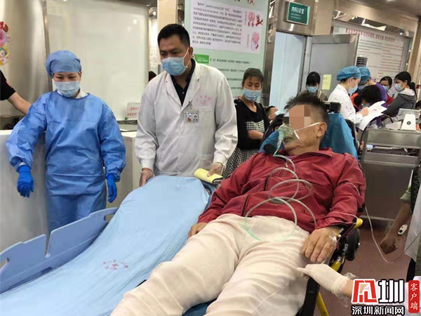 为了尽快将伤者送往医院治疗,铁骑队员立即进行交通疏导、鸣笛开道,开辟了一条紧急生命通道。在铁骑队员有条不紊地合作下,堵住救护车的车辆最终仅耗时7分钟,便将伤者从望桐路送到了深圳市人民医院接受治疗。