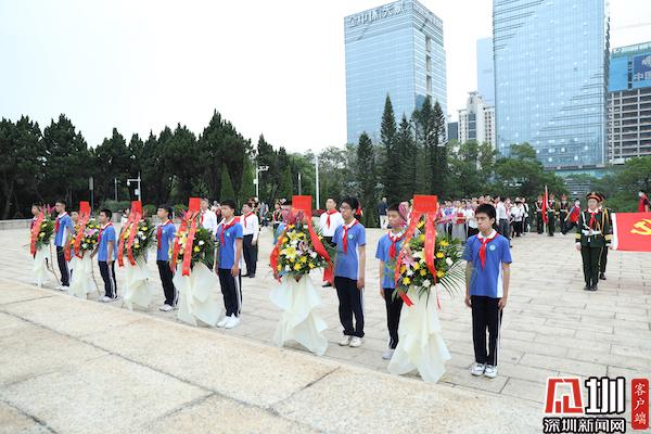 见圳客户端·深圳新闻网4月4日讯(见习记者 郝钰诗 实习生 覃钰清 通讯员 邹祁莹)4月4日,清明节,深圳市革命烈士陵园内庄严肃穆,“缅怀先烈 强信念 学习先锋 跟党走”罗湖区少先队清明祭英烈活动在此举行。活动旨在教育引导少先队员铭记革命先烈,传承红色基因,激发爱国情感,振奋民族精神。深圳团市委、深圳市退役军人事务局、深圳市教育局、深圳市少工委、罗湖团区委等单位的领导出席了活动,全区少先队员代表100余人参加了活动。