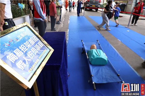 活动现场,宣传教育区、技能展示区、互动体验区、趣味比赛区等人头攒动,不时传来阵阵赞叹声、欢呼声。来自罗湖区森防大队、消防救援大队的队员们,向群众讲解无人机、液压切割机、消防机器人等救援设备、装备,演示森防油锯速切木头、风力灭火机吹砖头等等比武项目;居民体验使用干粉灭火器;美国心脏协会AHA导师向居民示范教学心肺复苏急救。趣味比赛区专门设置了防汛沙袋搬运、叠放竞速、简易担架搬运假人伤员、4*20M消防水带接力等独具防灾减灾特色的趣味比赛项目,吸引了众多社区居民积极参与。