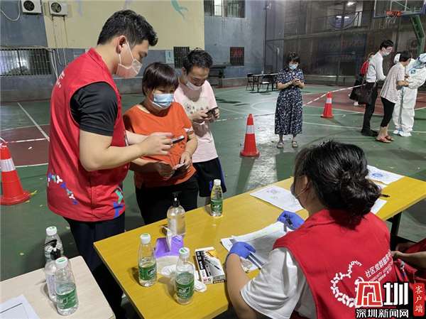 见圳客户端·深圳新闻网5月31日讯(记者 刘嘉敏 通讯员 郑跃芳)当前,深圳疫情防控“外严防输入、内严防反弹”形势依然严峻,罗湖莲塘片区与盐田交界,核酸检测工作不仅时间紧、任务重,而且面临巨大的压力。为坚决打赢这场疫情防控硬仗,5月26日至29日期间,深圳市罗湖区莲塘街道坳下社区在社区文化广场设立了临时核酸检测点,不断完善优化核酸检测工作方案,积极配合医护人员开展上门动员、扫码登记、分诊、秩序维护及后勤服务等保障工作,医护人员、街道下沉干部、社区工作人员、股份公司民兵及党员群众日夜兼程,加班加点,确保核酸检测工作有序高效开展。