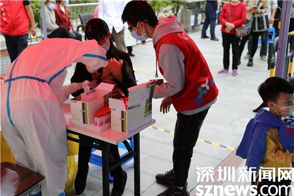 值得一提的是,记者来到田贝社区源兴居社区公园核酸检测点看到,现场开设了老人小孩专属通道。“许多老人没有智能手机,所以我们很多个采样点会设置绿色通道,这条队伍会有专门的工作人员拿着智能手机将大家的信息录入i深圳中,然后截图扫码进行下一步的核酸检测流程,这样也免去了老人小孩白跑一趟的情况。”社区志愿者林女士提醒道,如果老人小孩没有智能手机的,也可以和家属一起过来,然后将信息录入家属手机中即可进行核酸检测。