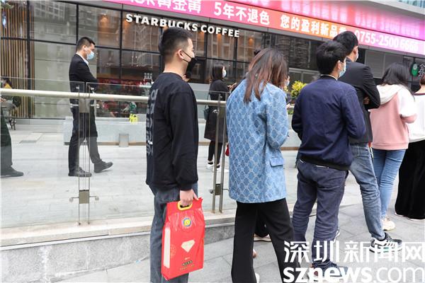 “请戴好口罩,保持一米距离,提前打开健康码……”走进水贝万山,周边商场和店铺均已关闭进行消杀,陆续有周边市民在核酸检测点有序排队检测。