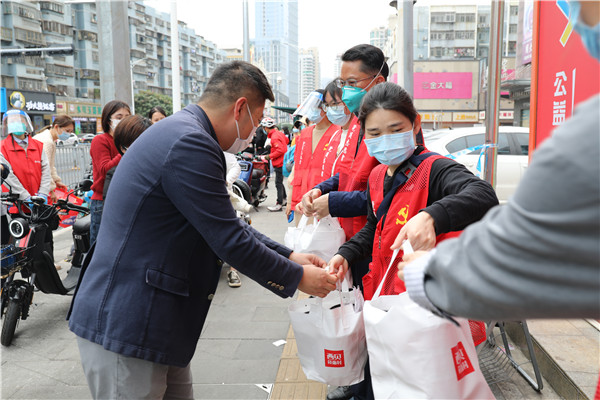 “你们辛苦了,大家快趁热吃。”爱心企业总监弓岳东和同事把热腾腾的腊八粥送到疫情防控工作者手上叮嘱道,“腊八节来临,看到日夜坚守在第一防线的工作人员,时刻保护着大家生命健康安全,我们深受感动,所以想尽自己的绵薄之力,给他们送去饱含祝福的腊八粥,希望那些在深圳这寒冷冬天中坚守的工作者们感受到社会爱的温度和力量。”