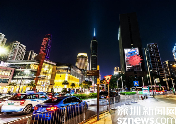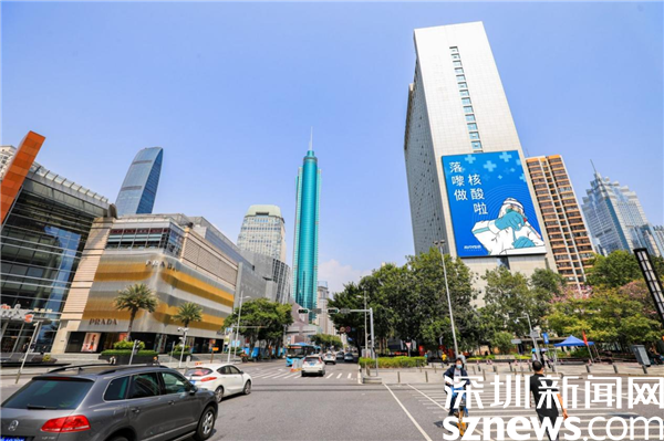 读特客户端·深圳新闻网2022年3月31日讯(记者 郭含笑)“稳住,我们能赢!”近日,在罗湖区万象城商圈鼎丰大厦侧墙大屏幕上循环播放着“稳住,我们能赢”的战疫裸眼3D画面和“深圳加油”“大白,您辛苦了”以及用广东方言配音的“落嚟做核酸啦!下来做核酸啦”等系列公益画面。