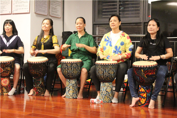 11月4日,是深圳市罗湖区桂园街道老围社区非洲鼓培训的第七节课,25名乐队成员齐齐到场,跟着老师认真练习。他们都是社区居民,已经连续第三年在社区学习非洲鼓的演奏,也是老围社区居民非洲鼓乐队成立的第三年。