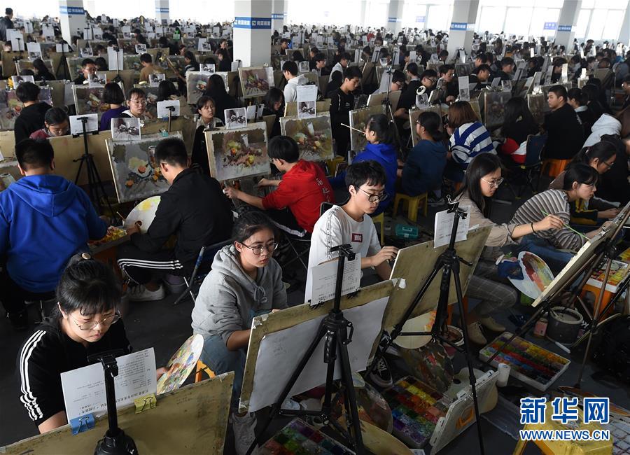 10月24日,考生在南京青蓝画室教学基地考点参加色彩科目模拟考试。 新华社记者孙参摄