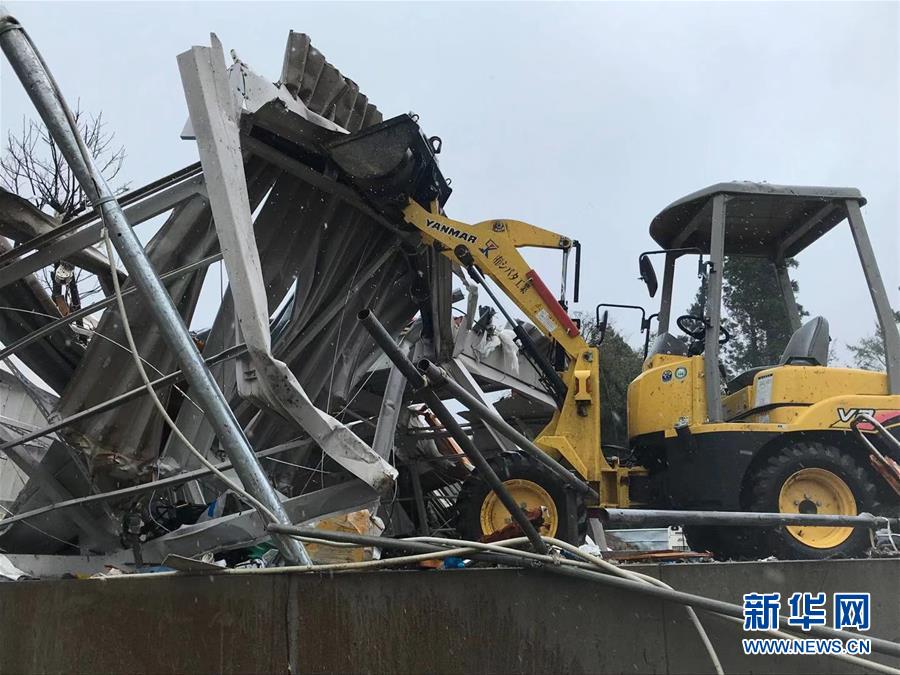 10月12日,在日本千叶县市原市,建筑物遭龙卷风袭击后被损毁。新华社记者 邓敏 摄
