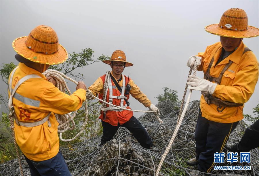 1月14日,百色工务段白水河桥隧工区班组工长王勇(中)在穿戴安全装备,准备下山崖巡查。在中国铁路南宁局集团公司百色工务段白水河桥隧工区,有一个由14名工人组成的班组。他们常年像“爬山虎”一样行走攀爬在地形险峻、云雾缭绕的高山上,负责南昆铁路辖区路段的搜山扫石工作,清除一切可能危害铁路行车安全的因素,保障旅客出行安全。新华社记者张爱林摄