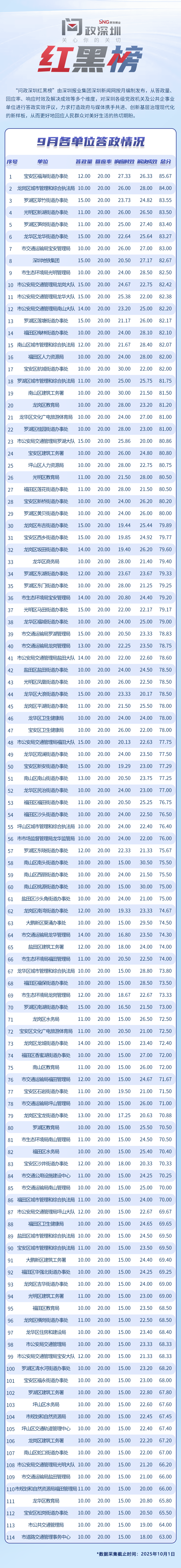 为探寻媒体如何精准赋能基层治理现代化的“深圳路径”,深圳报业集团正式挂牌成立“问政深圳”工作室,旨在进一步推动网络问政工作的高效开展。为确保相关工作更加契合实际需求,自上期起,深圳报业集团深圳新闻网按照“最快速度办结”的总体要求,将原有月度榜单创新升级为“问政深圳红黑榜”,并对评分体系进行了细致优化。该榜单从答政量、回应率、响应时效及解决成效等多个维度,对深圳各级党政机关及公共企事业单位进行答政实效评议,力求打造政府与媒体携手共进、创新基层治理现代化的新样板,从而更好地回应人民群众对美好生活的热切期盼。