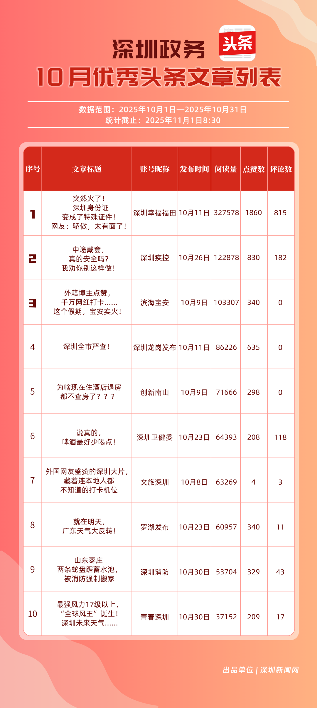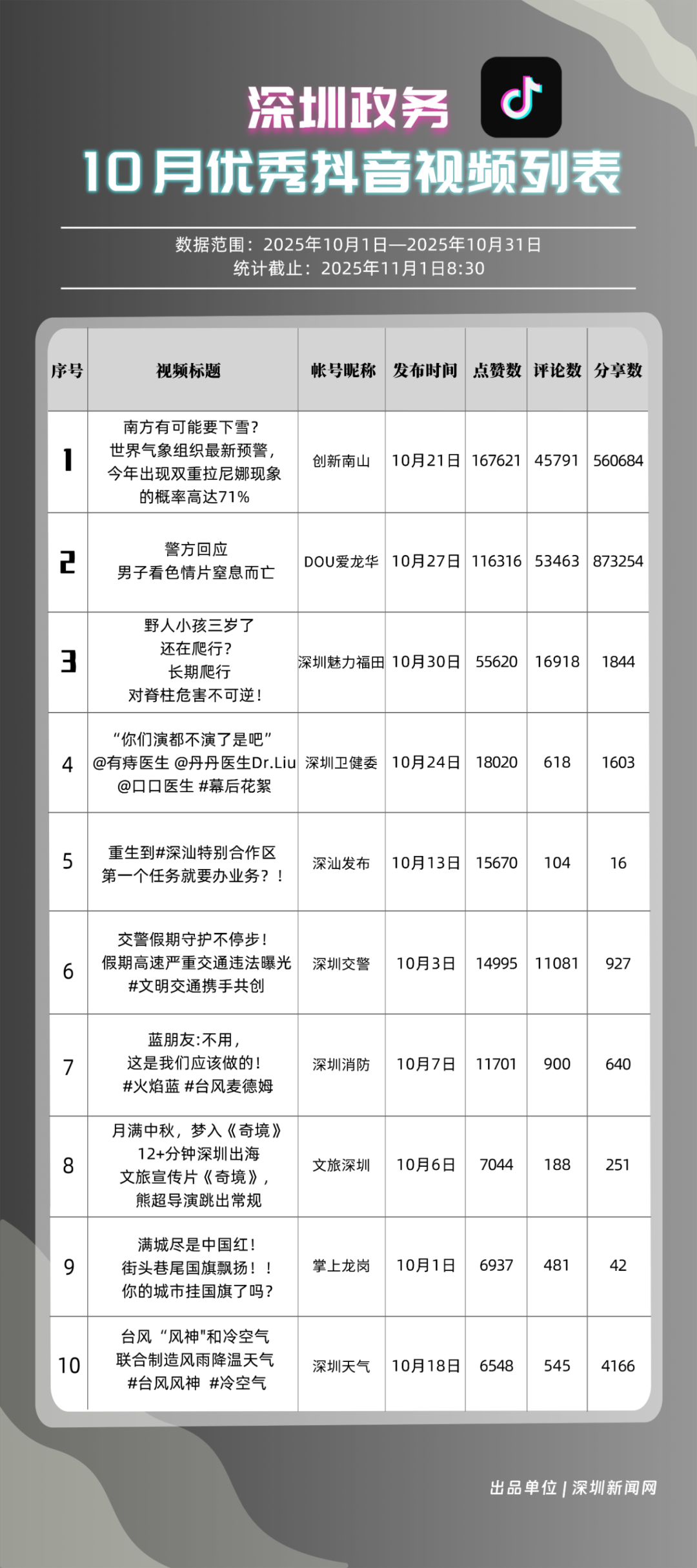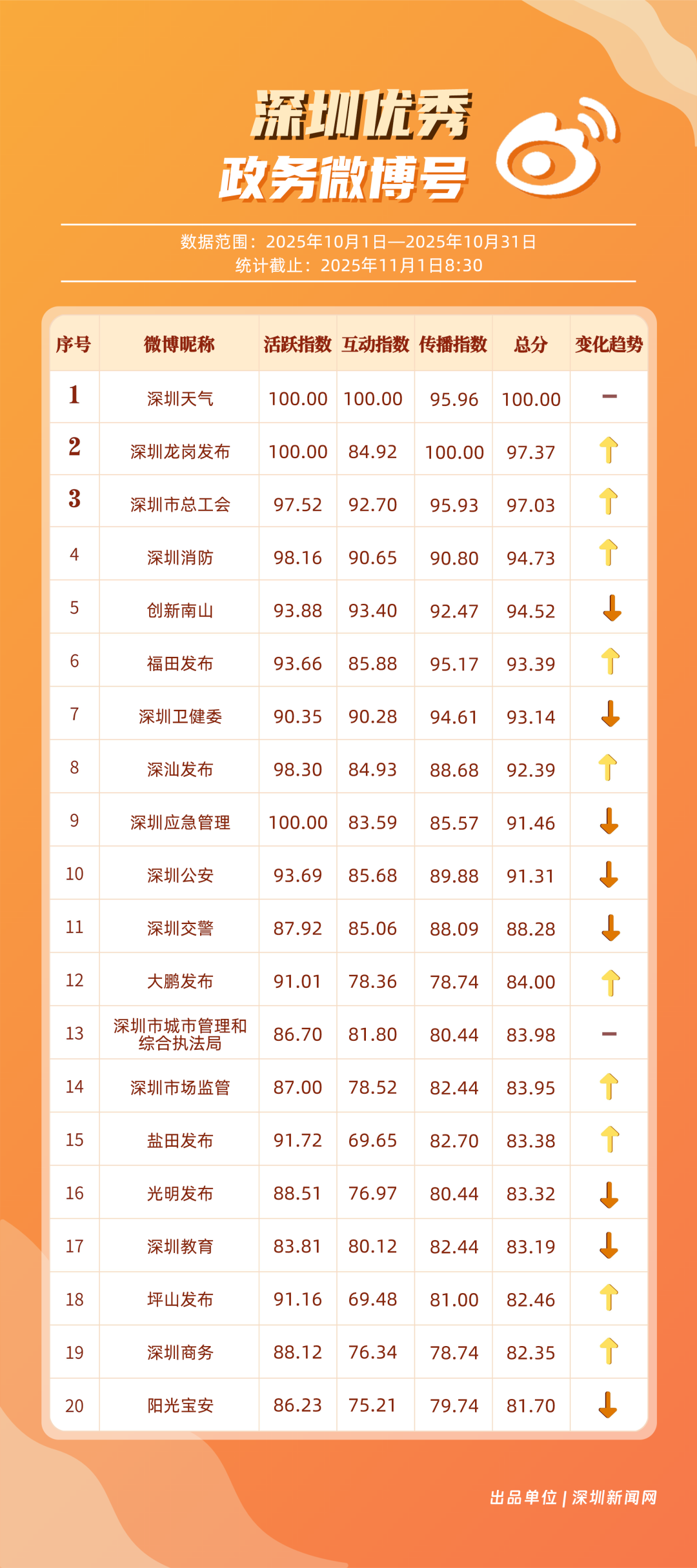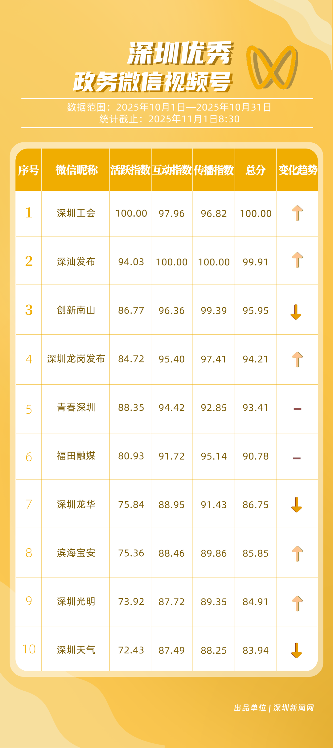 10月“深圳优秀政务新媒体矩阵”榜单揭晓,这6个矩阵排名有上升!