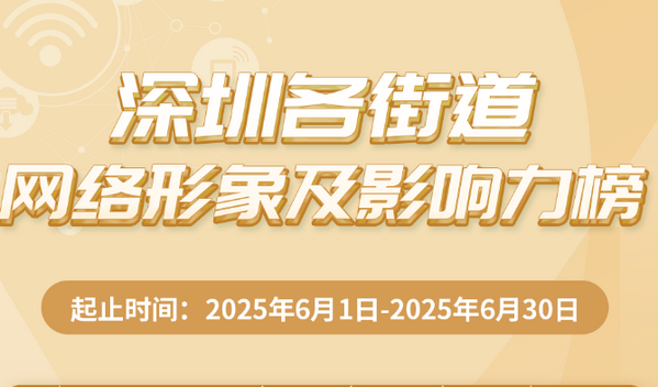 为深入了解深圳市各街道的网络形象构建状况和社会影响,推动街道治理“提质增效”,增强城市高质量发展动能,深圳舆情研究院编制推出《深圳各街道网络形象及影响力榜》。
