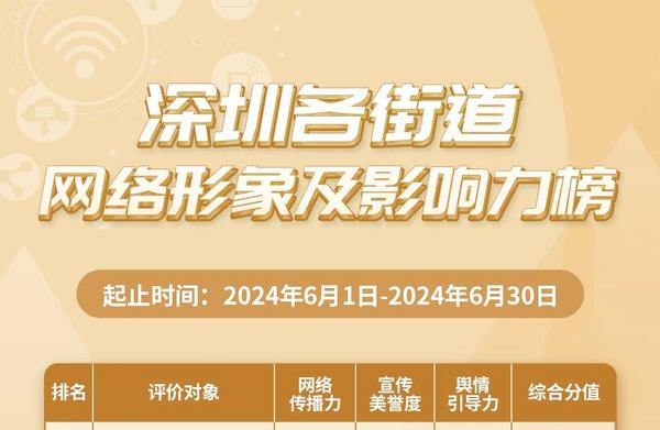 6月街道网络形象及影响力榜揭晓,宝安区领衔,多区并进!